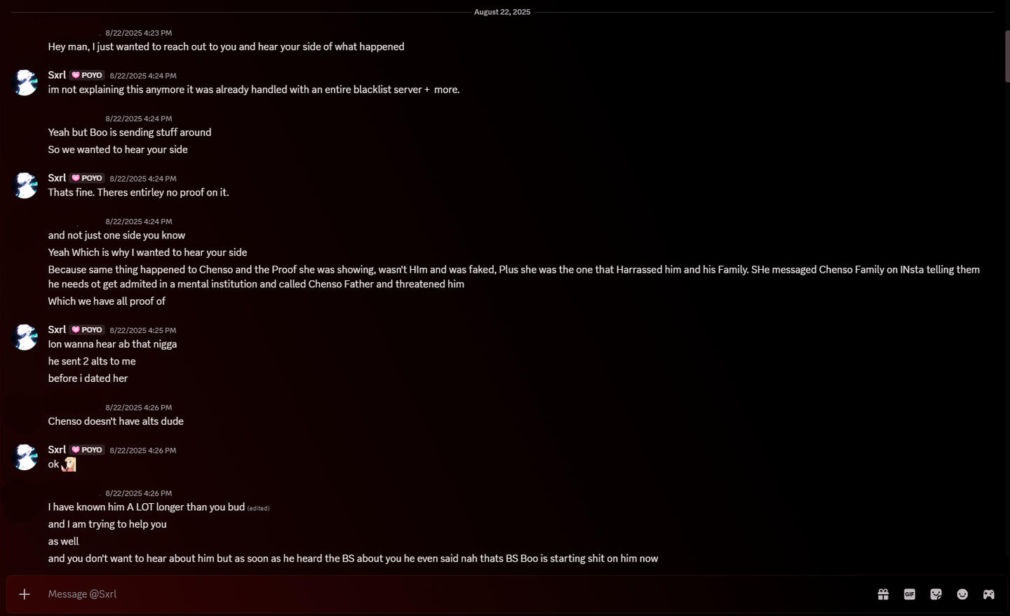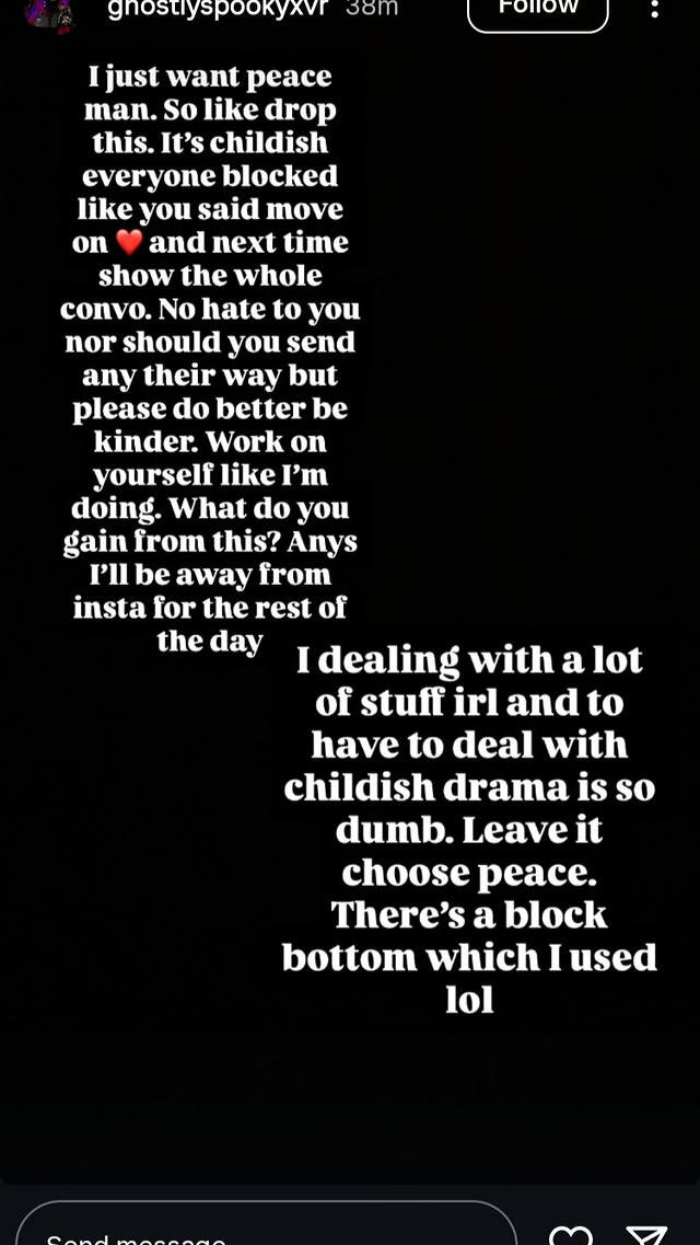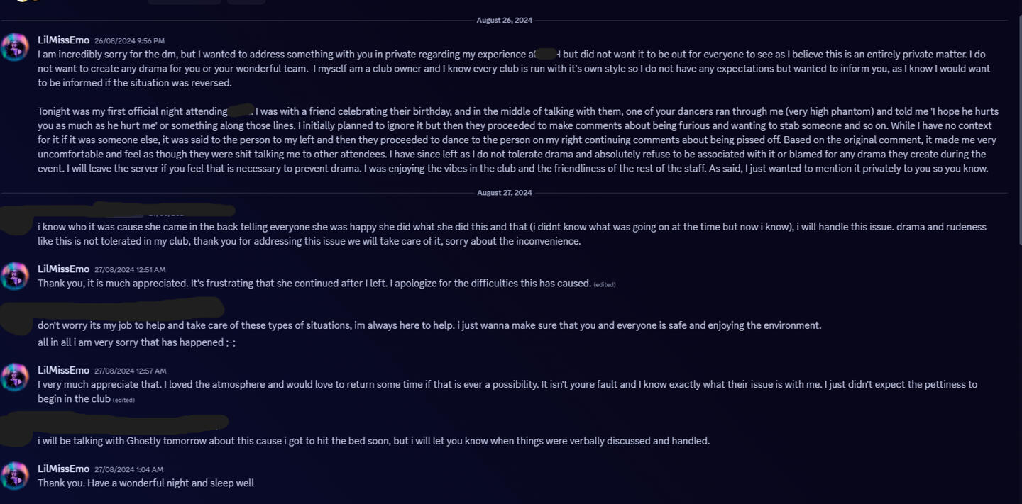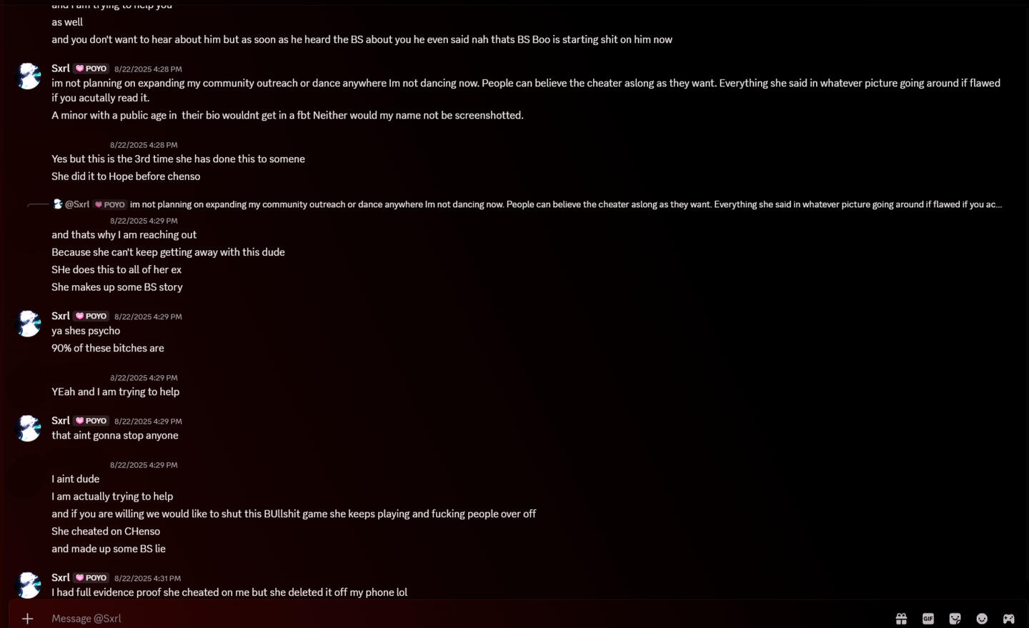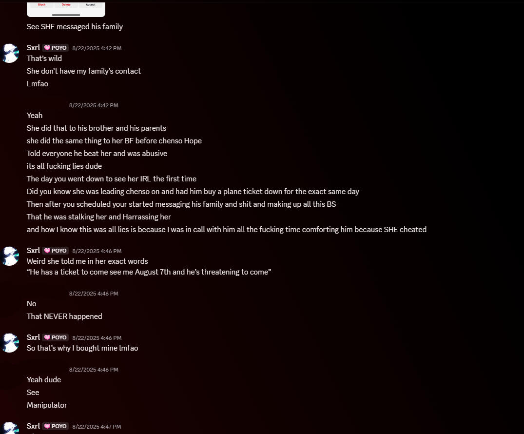 Ghostlyspookyx and LilMissEmo have a complicated history that has resulted in Ghostlyspookyx being demoted at Club MLH, an alleged death threat directed at LilMissEmo, and emotional distress for DarkDre. Recently, Ghostlyspookyx approached DarkDre regarding concerns that he was 'copying' her avatar colors and mat swaps. Both DarkDre and LilMissEmo interpreted her reaction as being related to color choices, as her combinations and swaps are commonly used within VRChat. Following my previous post, Ghostlyspookyx indicated that her concerns stemmed from feelings about DarkDre's behavior. Currently, I have not found evidence to substantiate these claims, but it is important to note that a lack of evidence does not imply innocence. I will provide updates if any new information emerges.The focus has now shifted, as Ghostlyspookyx has blocked both DarkDre and LilMissEmo but continues to mention LilMissEmo in her posts, including sharing cropped screenshots that reveal her name.Additionally, there is a claim made by Ghostlyspookyx that requires clarification. In the August 2024 screenshots, she states, "Mercy and I were together" and "we were exclusive." However, this assertion can be contradicted by the fact that Mercy was in a relationship with someone outside of VRChat during this time. It was also known among his friends that their relationship could be characterized as casual. It is important to address whether Ghostlyspookyx was misled or intentionally misrepresenting the situation.