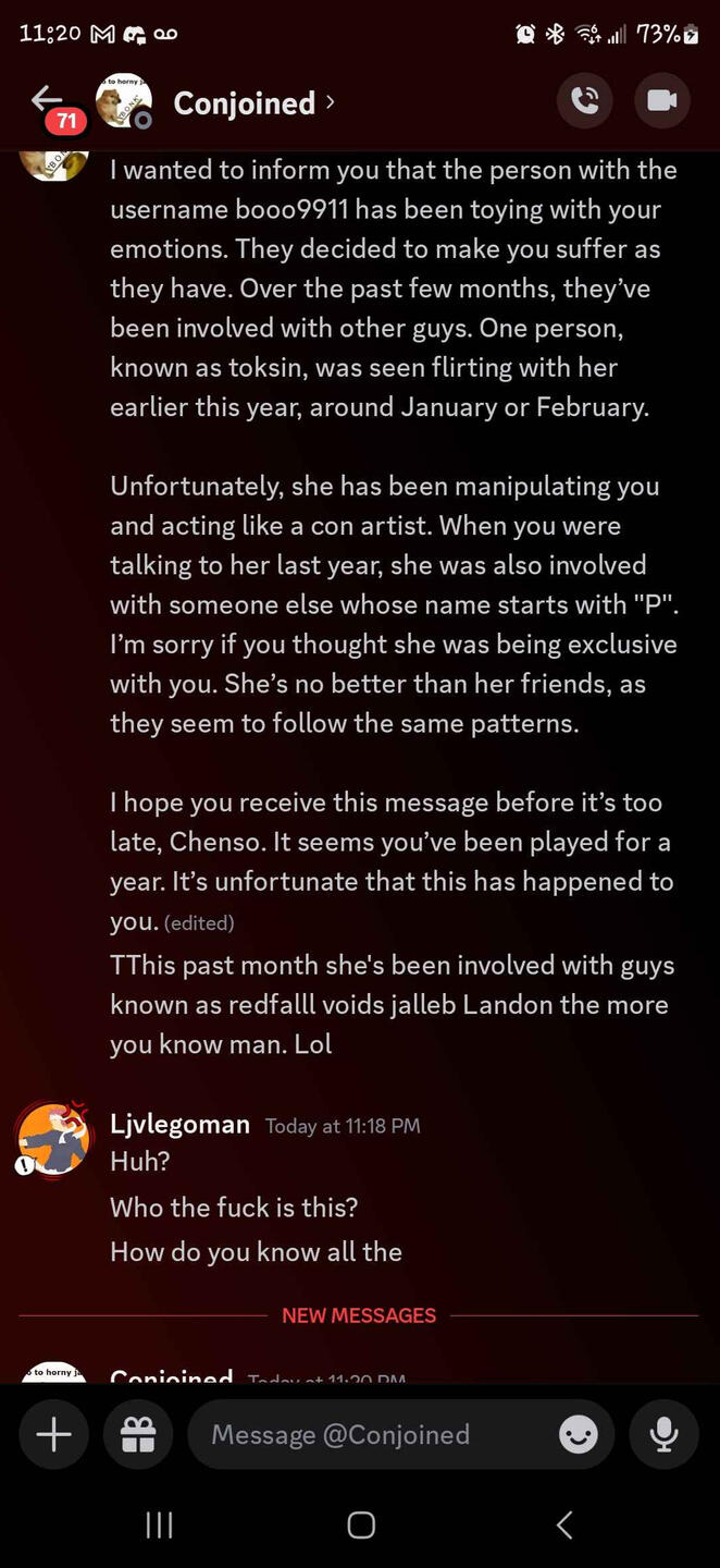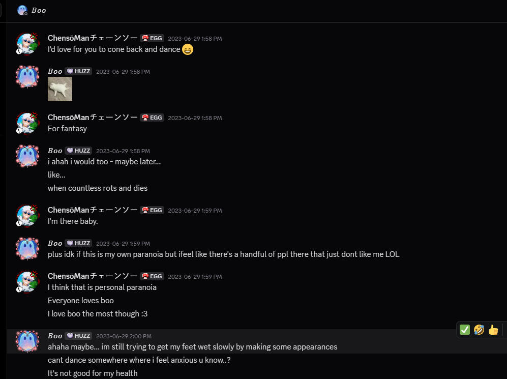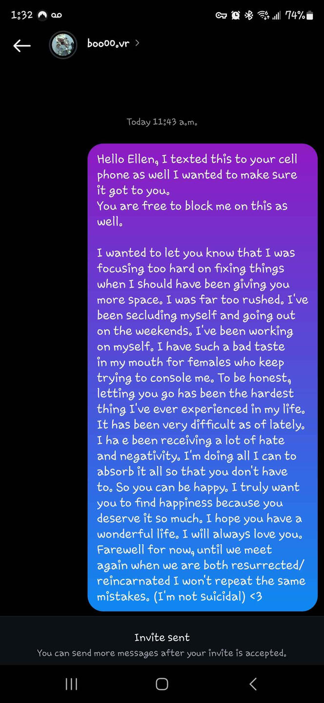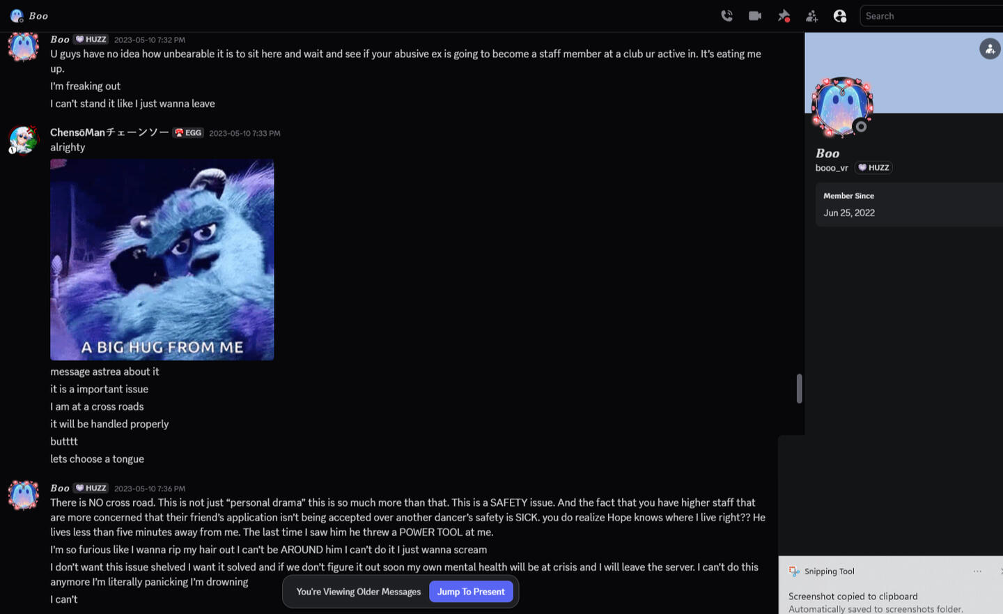 There appears to be a consistent pattern in Boo's three relationships within the VRC community, where the men involved have faced significant consequences, including being blacklisted.The attached pictures and videos aim to illustrate a pattern and offer additional context to these situations. While it remains unclear whether this reflects on Boo's judgment or the dynamics at play, the materials may offer insights that could help in understanding. It is important to note that the interpretation of these events is subjective and open to discussion.
